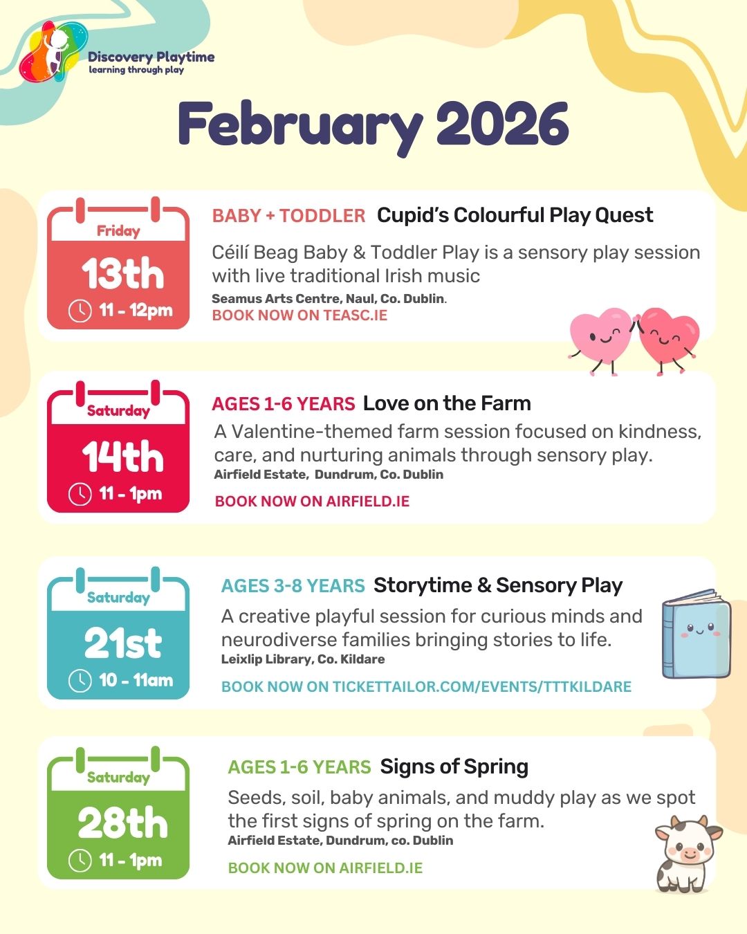 This January, Discovery Playtime invites families to explore the magic of winter through playful sensory adventures at the Séamus Ennis Arts Centre and Airfield Estate. From Arctic expeditions with live Irish music to frosty farm fun and hands-on food journeys, each session is thoughtfully designed to inspire creativity, support child-led exploration, and nurture connection through play. Tickets can be booked directly through the venues’ websites - don’t miss these cosy, joy-filled experiences to kick off the new year!