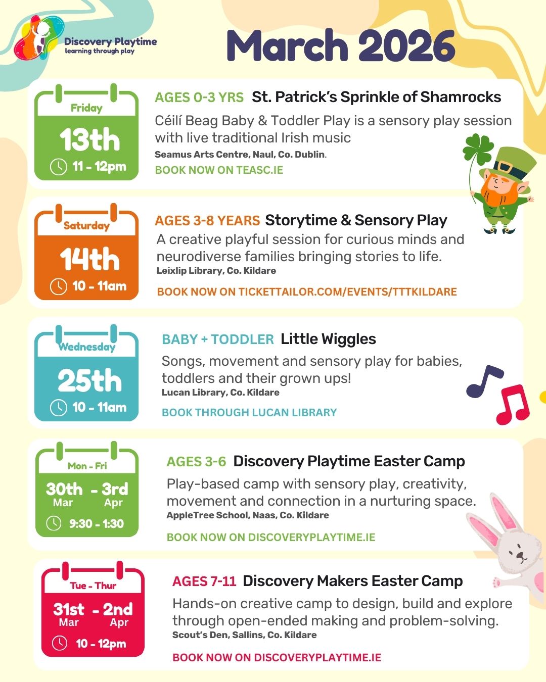 February at Discovery Playtime is all about connection, gentle exploration, and noticing the small seasonal changes around us. Across the month, families can enjoy a mix of sensory play, live traditional Irish music, story-led sessions, and farm-based experiences, all thoughtfully designed to support early development in calm, inclusive spaces. Each session offers children the chance to explore at their own pace while sharing meaningful moments with the grown-ups who matter most.
