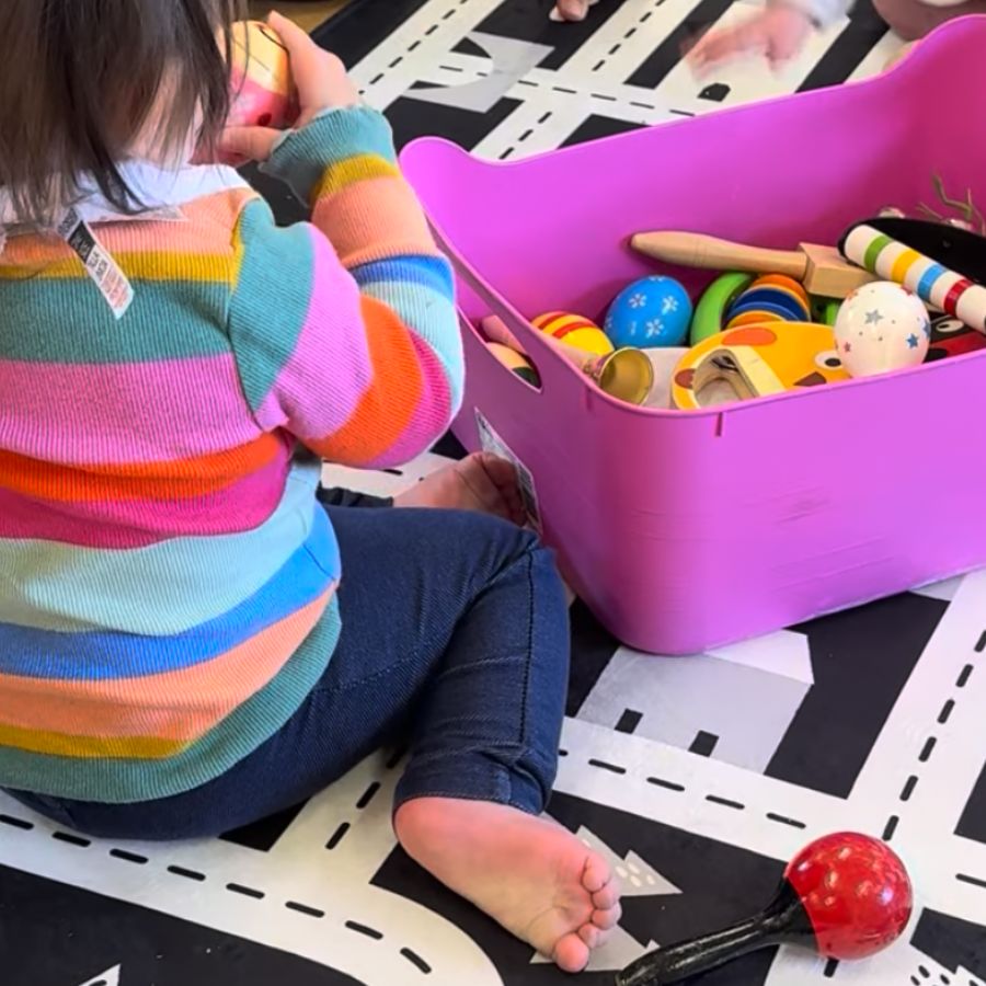 A joyful, developmentally rich music and movement class featuring songs, rhythm, sensory props, and gentle movement, plus 15 minutes of relaxed free play to encourage bonding, communication, and confidence.